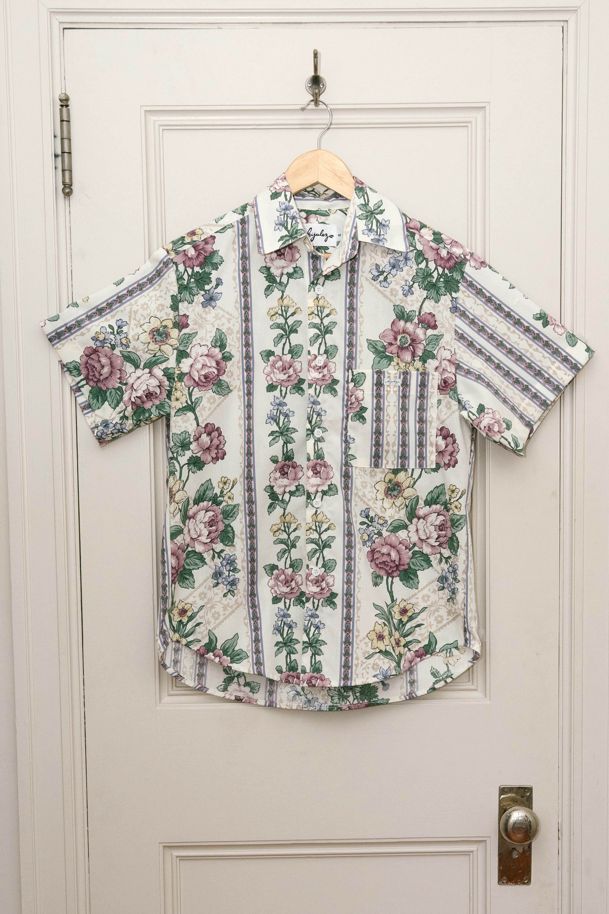 Our classic Trev button down silhouette sewn from 100% reclaimed cotton and featuring our custom hijulez shell buttons.