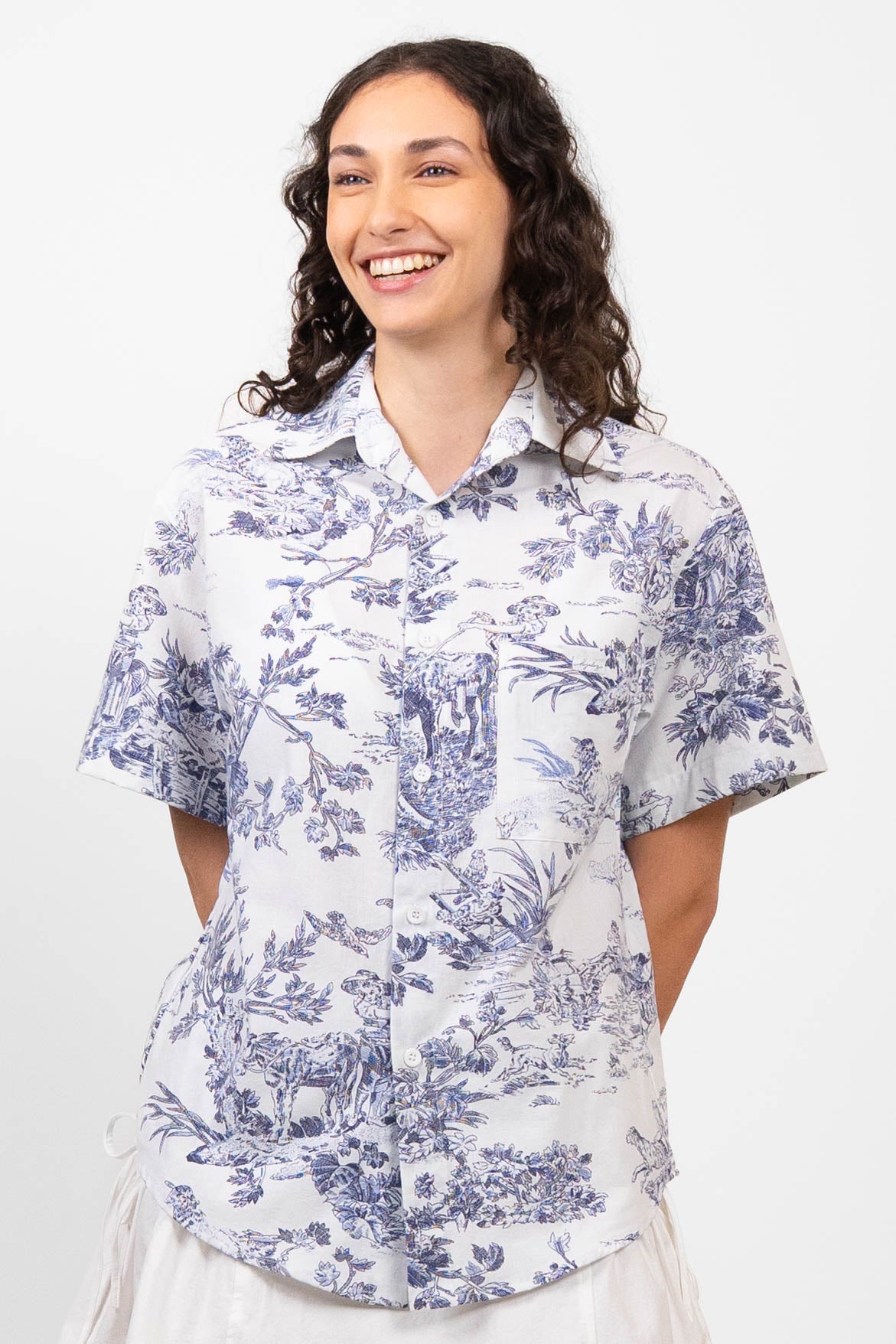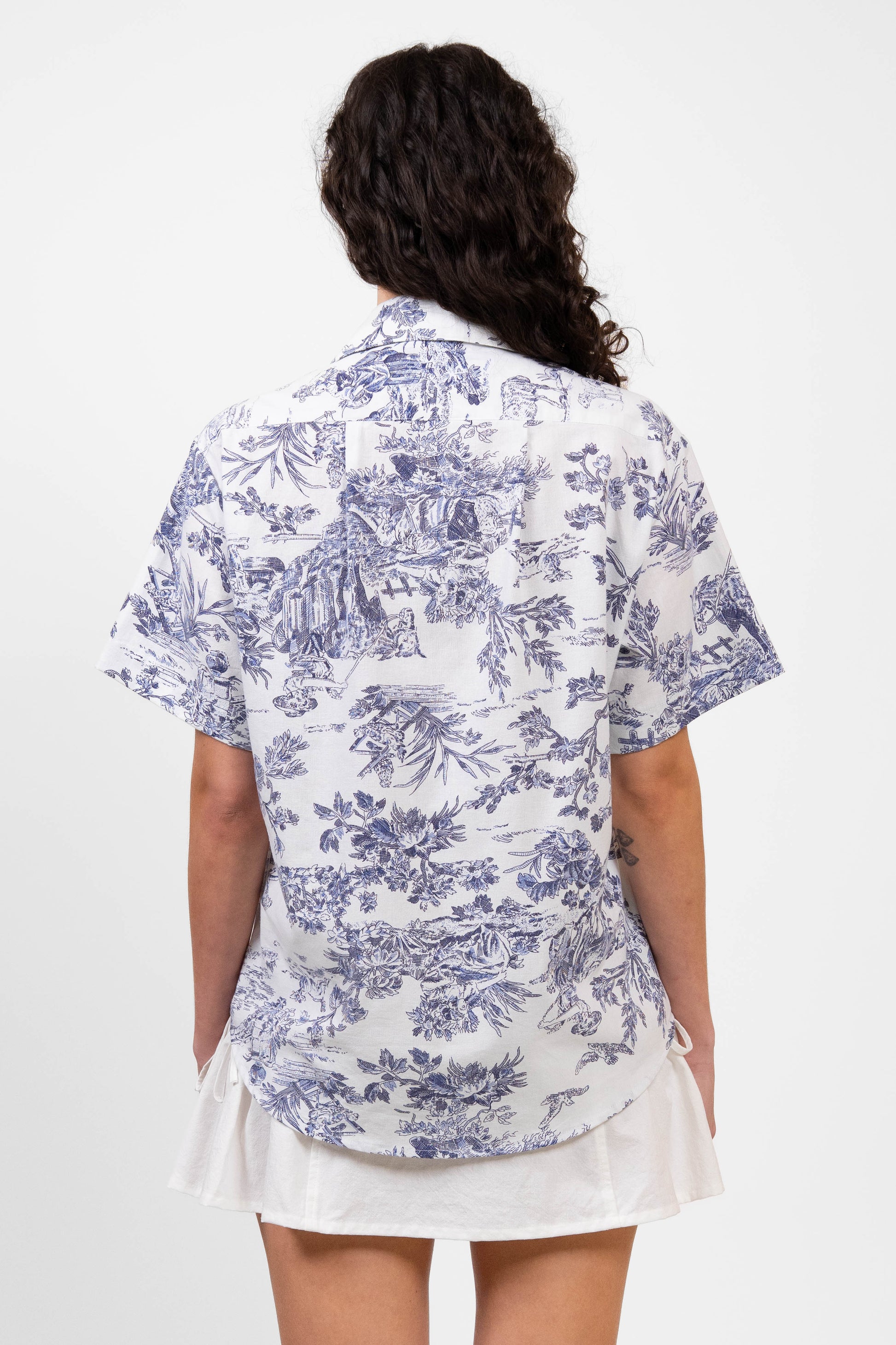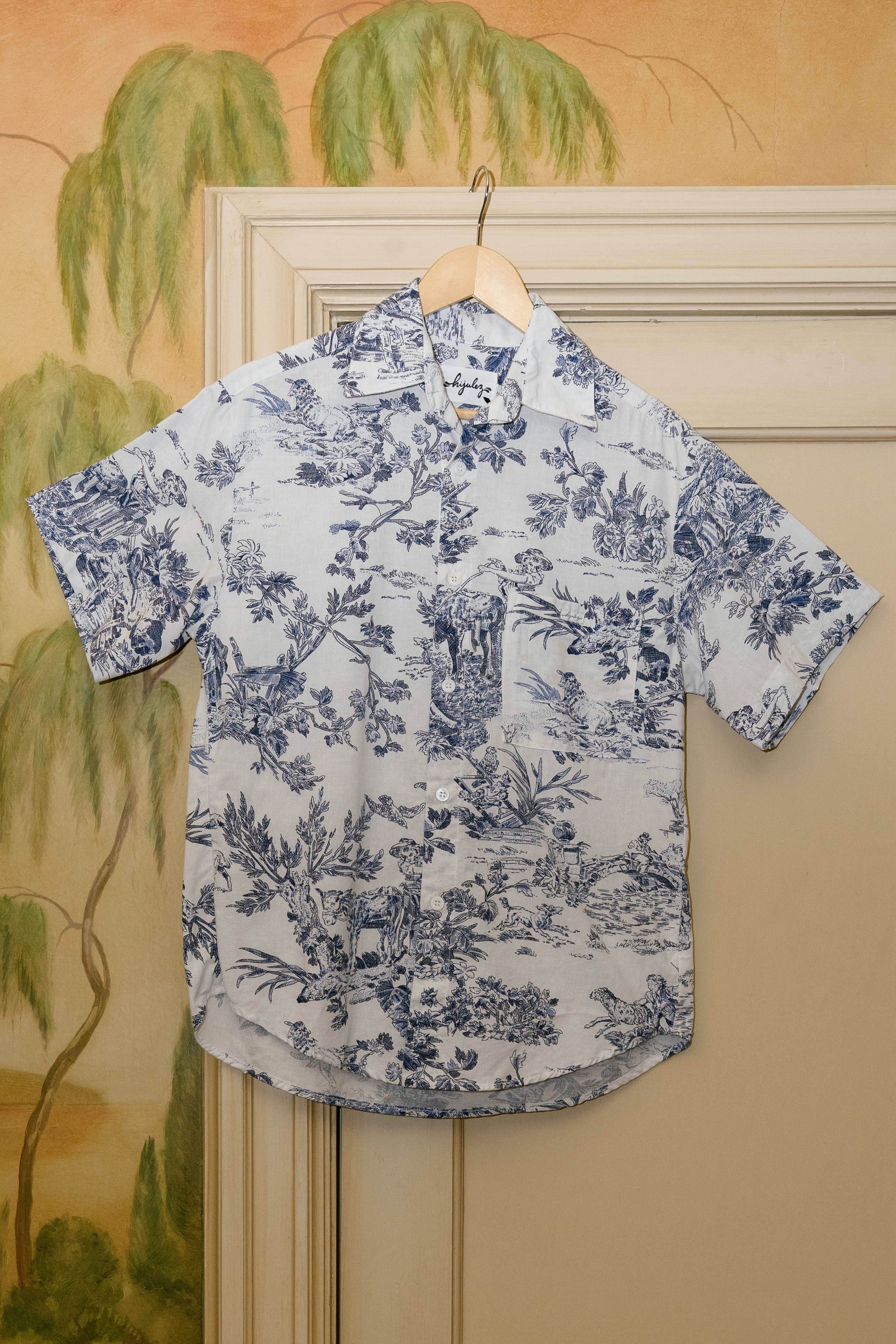 Our classic Trev button down silhouette sewn from 100% reclaimed cotton and featuring our custom hijulez shell buttons.