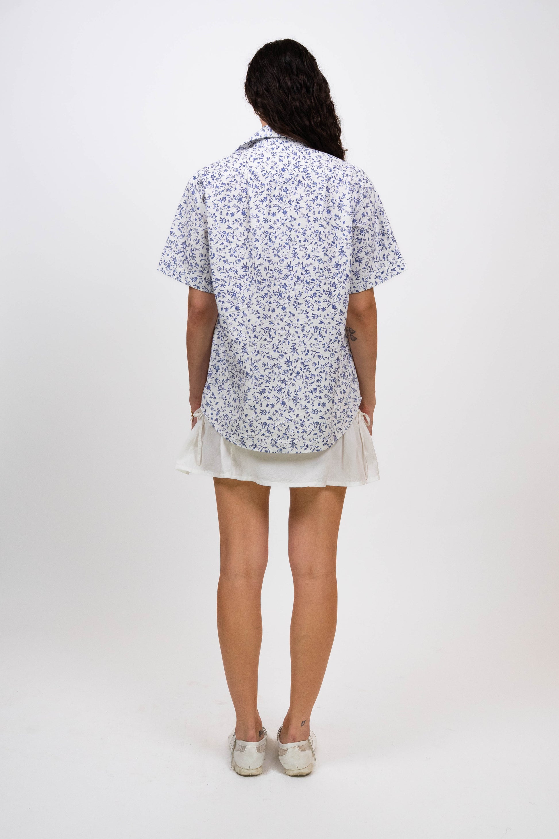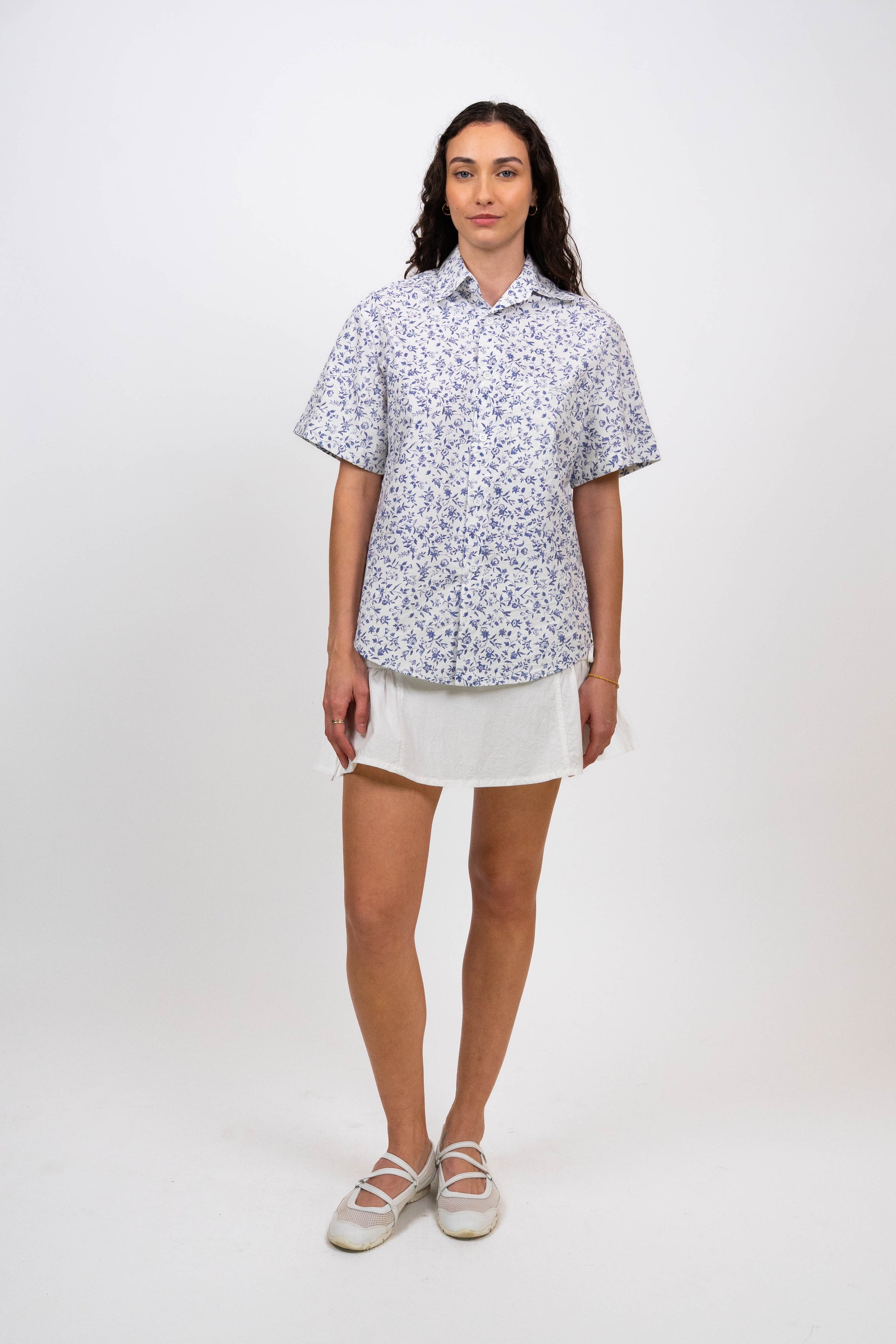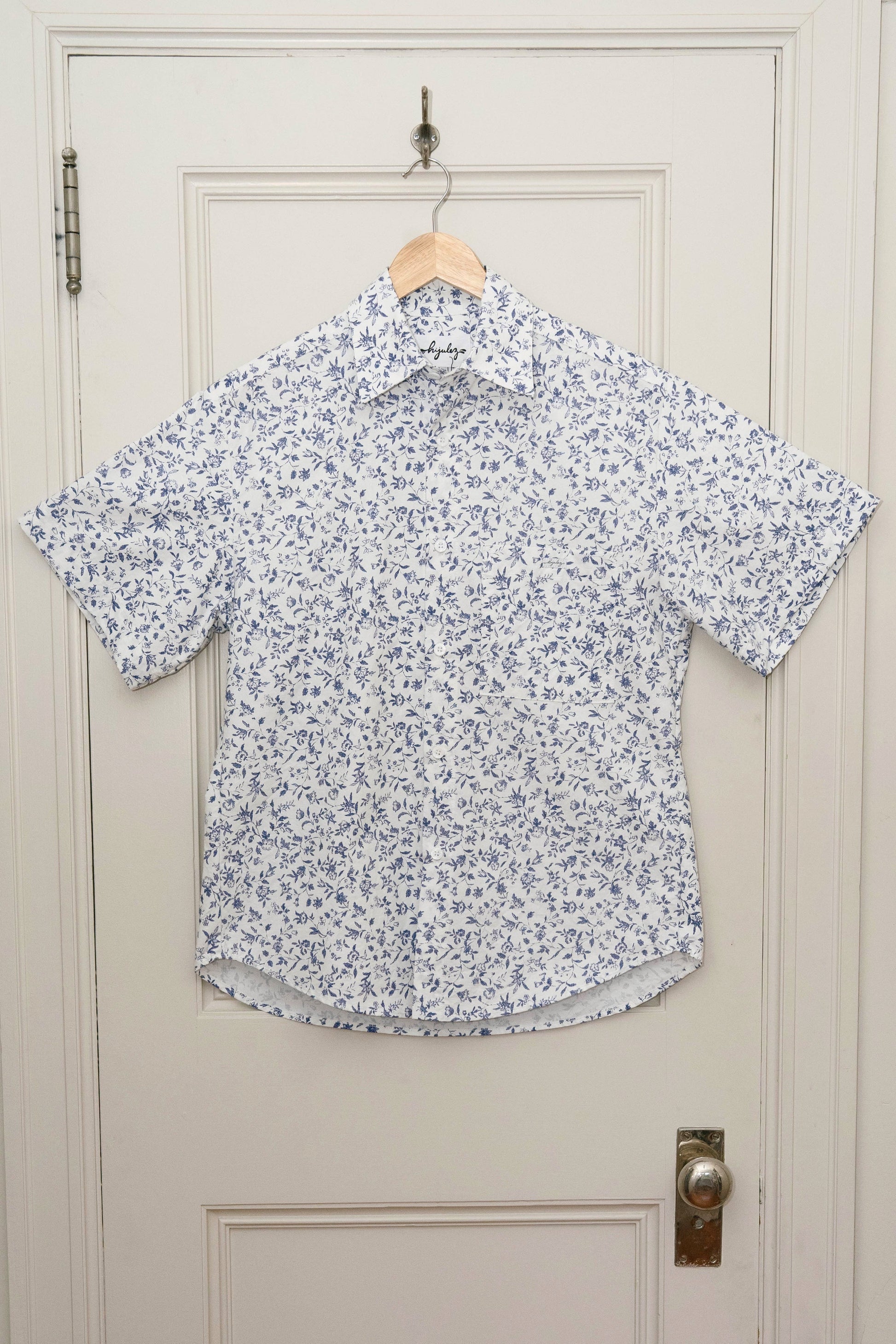 Our classic Trev button down silhouette sewn from 100% reclaimed cotton and featuring our custom hijulez shell buttons.