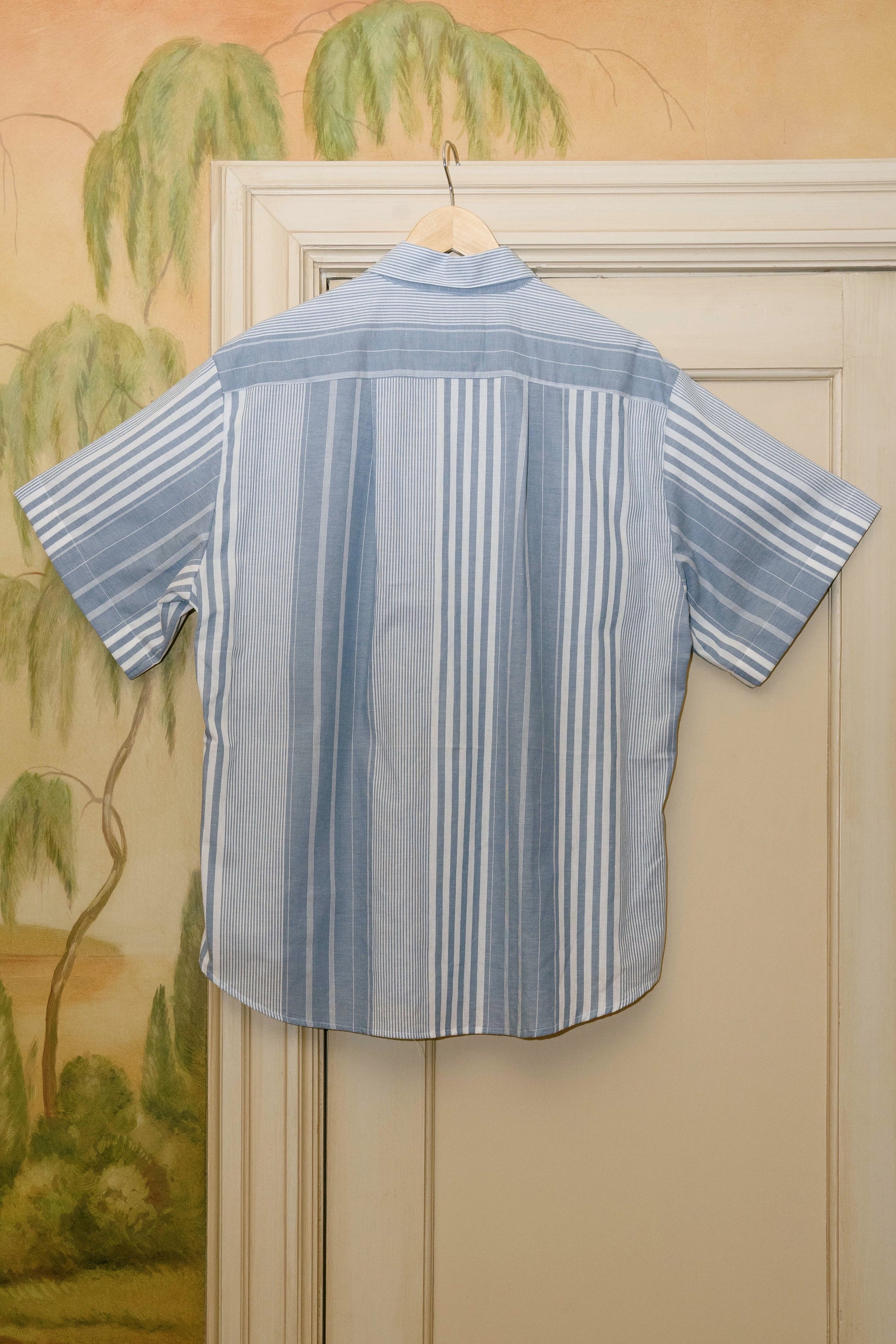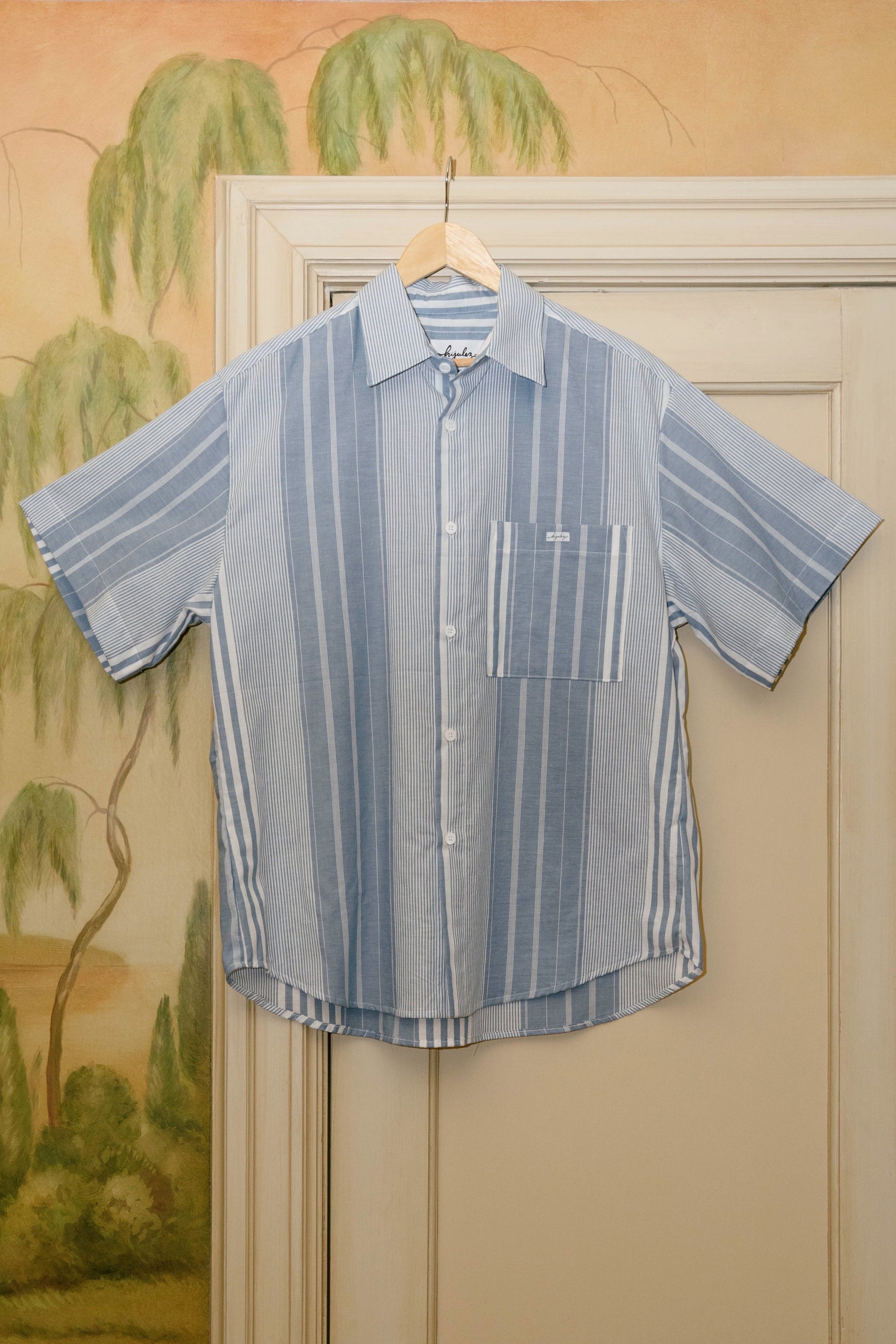 Our classic Trev button down silhouette sewn from 100% reclaimed cotton and featuring our custom hijulez shell buttons.